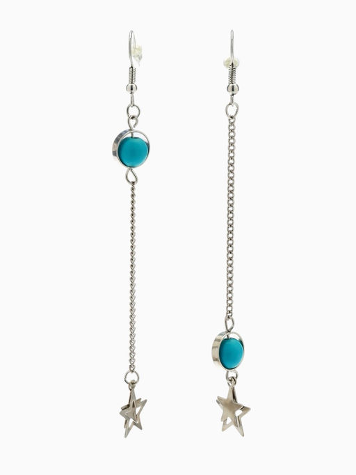 • Серьги под натуральный камень «Звёзды» бирюза, голубые в серебре