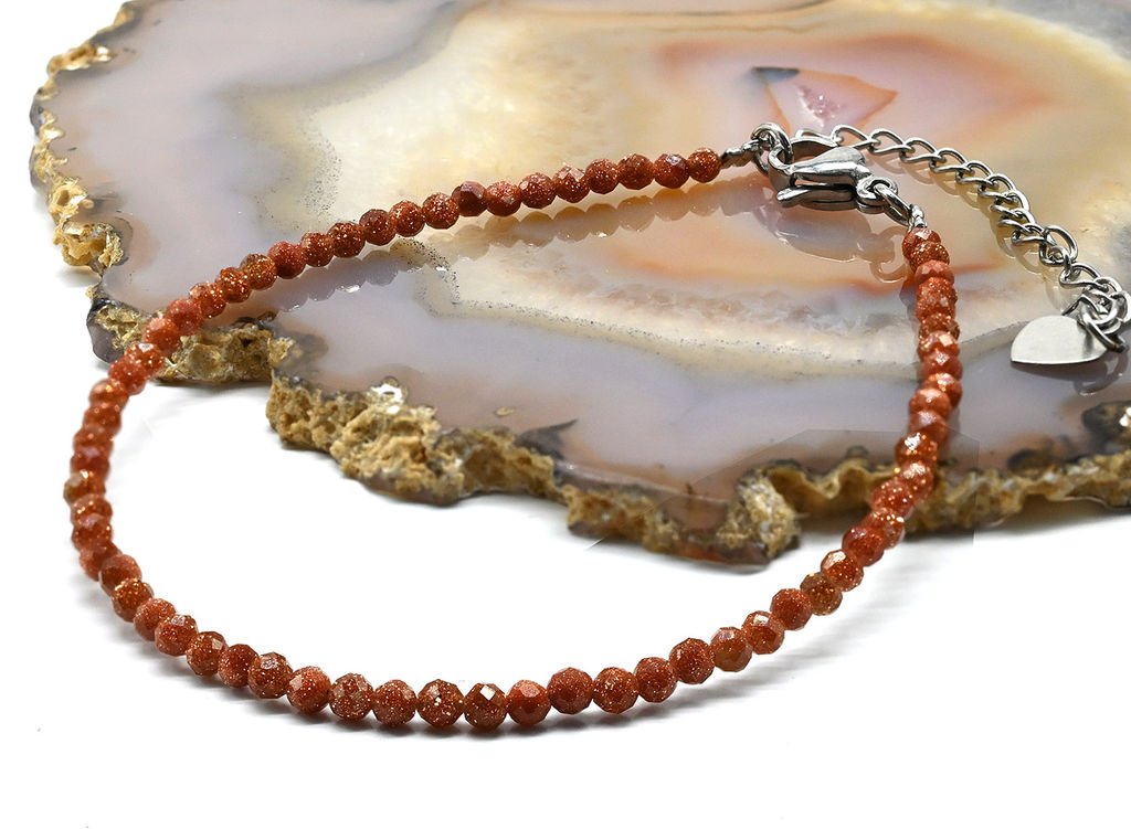 Браслет из авантюрина шарик граненый 2мм цвет оранжевый, 17см