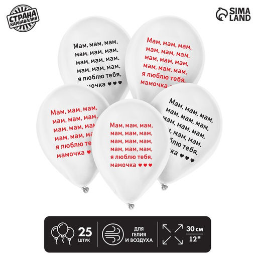 Воздушные шары латексные 12" «Мам, мам, мам», 25 шт.