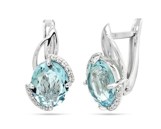 Серьги, арт.640527 Серебро Серебро 925, 3,61 гр., аквамарин выращ.­