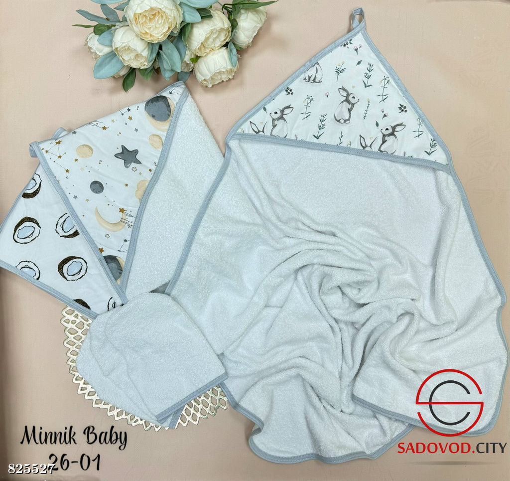 • Махровое полотенце с муслиновым уголком и варежкой