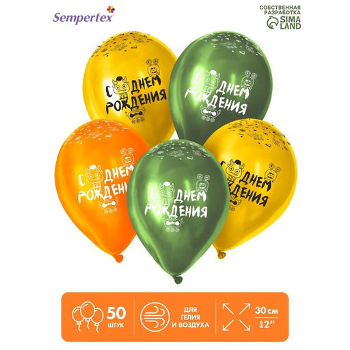 • Воздушные шары латексные 12" «С Днём Рождения», 50 шт.