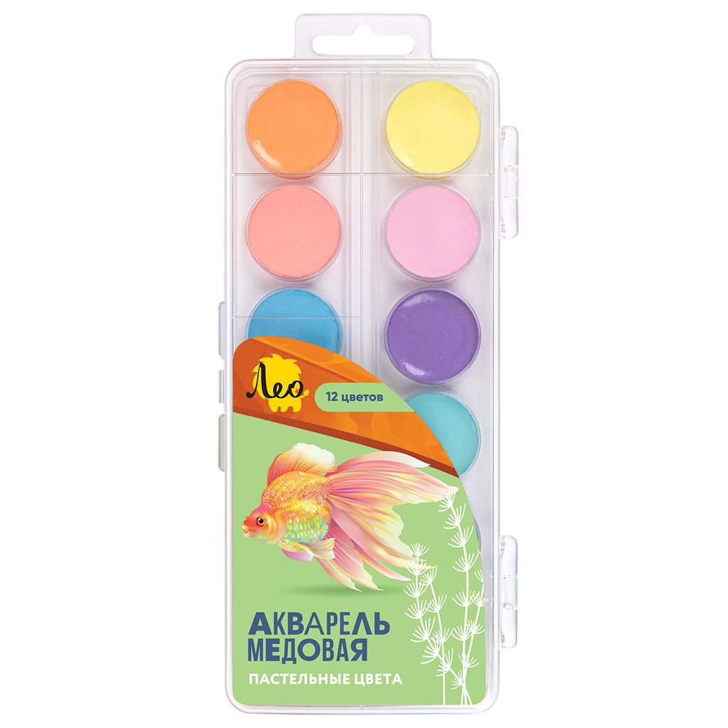 Краска акварель Лео Ярко медовые, без кисти (пастельная) в пластиковой упаковке с европодвесом LBPW-0112 12 цв. пастельные цвета