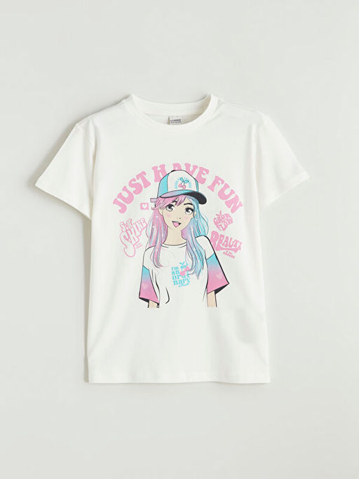 Bisiklet Yaka Bask?l? K?z ?ocuk Ti??rt