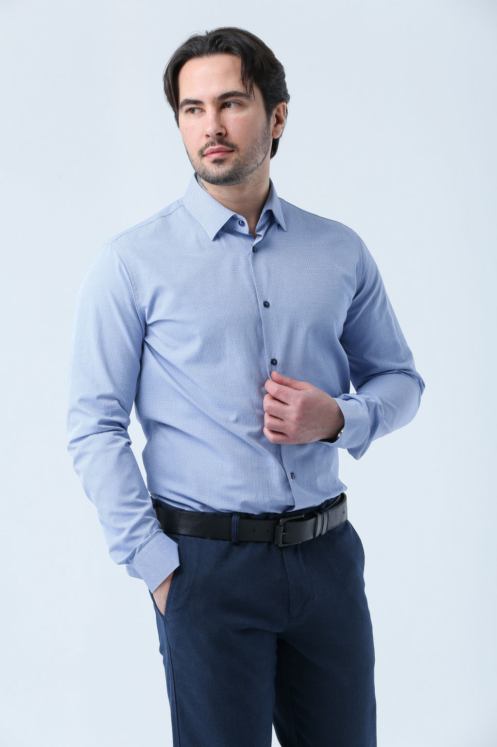 Бренд: Nicolo Angi Длина рукава рубашки: Длинный Карман: Без кармана Силуэт: Полуприталенный силуэт (regular fit) Состав: 80% хлопок, 20% полиэстер Стиль: Деловой Узор (рисунок): Без рисунка (однотонная) Цвет: Темно-голубой