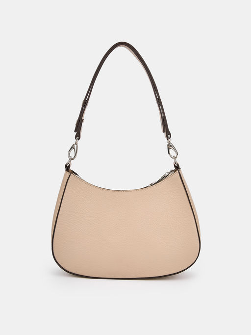 Сумка из натуральной кожи нежного бежевого оттенка подойдет к любым повседневным образам благодаря лаконичному дизайну, не привлекающему лишнего внимания. Основное отделение застегивается на молнию, внутри есть карман для документов и карт. Ремешок фиксируется пряжками и регулируется до комфортной длины.