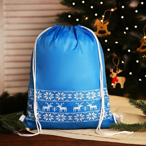 • Мешок для подарков с новогодним узором, на шнурке, размер 35×1×42 см, синий