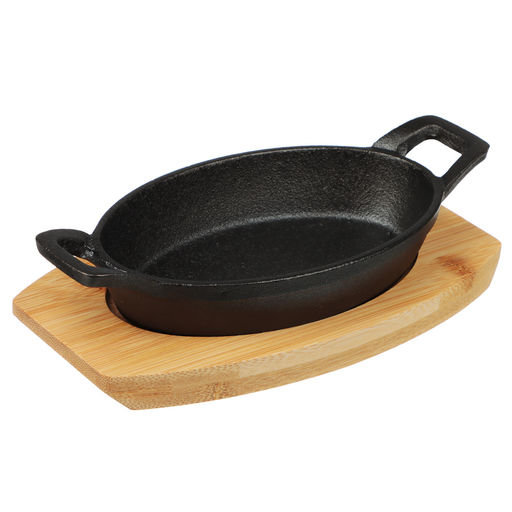 Чугунная сковорода мини на подставке из бамбука SATOSHI, овальная, 15х9,8 см, с ручками это посуда для порционного приготовления и эффектной подачи блюд. Удобна для порционных омлетов, запекания овощей, мини-стейков и вторых блюд. Изготовлена из качественного чугуна. Утолщенное дно обеспечивает улучшенное термораспределение, поэтому блюда получаются равномерно приготовленными, ароматными и сочными. Долго сохраняет тепло, поэтому готовое блюдо медленно остывает. Стильная бамбуковая подставка защищает поверхность стола и скатерть от воздействия высоких температур, а также добавляет эстетики в сервировку. Сковорода легко моется, не боится царапин. Подходит для всех типов плит, включая индукцию. Отличный выбор для домашней кухни, кафе и ресторана. Материал Чугун Размер упаковки 21,9х12,7х6,3 см Совместимые плиты Для всех типов плит, включая индукцию Размер 15х9,8 см Тип ручки Несъемная Цвет Черный Вес в упаковке 0,749 кг Форма Овальная Состав Чугун, бамбук Материал ручек Чугун Страна производства Китай Комплектация Сковорода Подставка