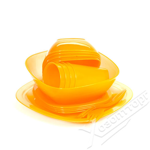 Набор пластиковой многоразовой посуды на четырех человек - идеальное решение для пикника. Легкие аксессуары, которые компактно складываются, не утяжелят сумку. С таким набором можно не переживать, что посуда разобьется в дороге или на природе. При этом многоразовая посуда позволит комфортно перекусить и сократить количество выбрасываемого пластика после выездов на природу. Изделия выполнены из безопасного пищевого пластика полипропилена. В наборе: тарелки плоские - 4 шт., стаканы - 4 шт., ложка-вилка-нож - 4 шт., салатник 1,6 л - 1 шт., блюдо плоское - 1 шт.­