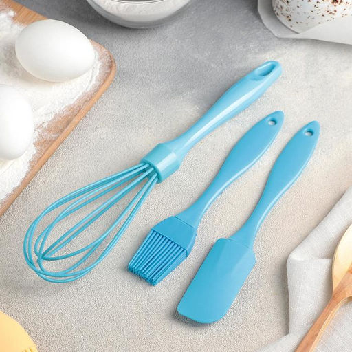 В набор для выпечки входит шпатель, кисточка и венчик. Приборы изготовлены из прочного материала, не выделяют запахов и вредных веществ, безопасны в использовании.Кисточка используется для смазывания выпечки яйцом, кремом, глазурью, а также для обработки сковороды маслом при выпечке блинов и оладий.Лопатка поможет быстро и равномерно нанести крем или шоколадную глазурь на коржи, торты и другую выпечку. Рекомендуется для работы с антипригарными ковриками и силиконовыми формами. Не травмирует посуду с тефлоновым покрытием.Венчик позволит быстро взбить крем из белков и жирных сливок для украшения кондитерских изделий. Набор: Да. В наборе, шт.: 3. Рисунок: Нет. Комплектация: Кисть. Комплектация: Лопатка. Комплектация: Венчик. Бесплатная доставка: Да. Размеры товара: 6/6/28. Примечание: Выбор конкретных цветов и моделей не предоставляется. На фотографиях могут быть представлены не все варианты..