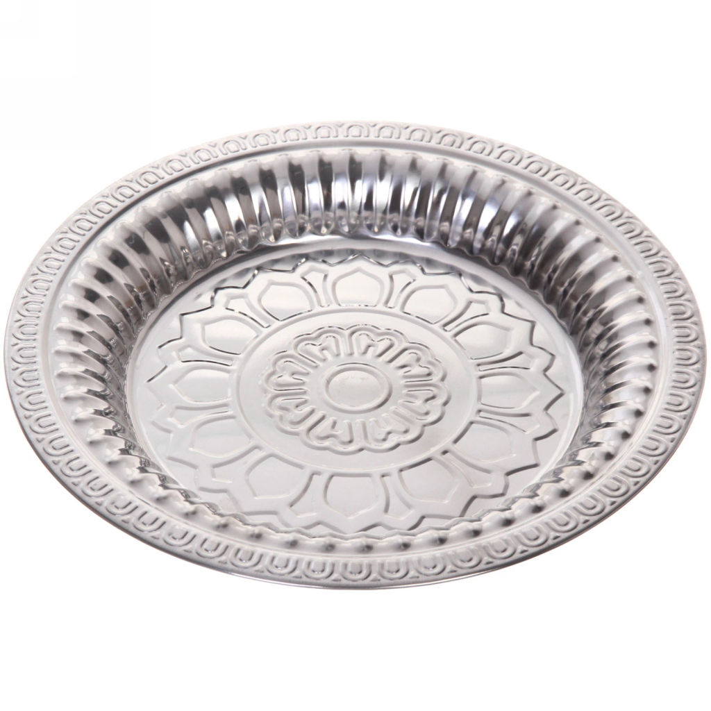 Поднос металлический станет незаменимым предметом для сервировки стола. Поднос декоративный отлично подходит для фруктов, закусок или десертов, горячего. Поднос выполнен из нержавеющей стали, экологичного и долговечного материала. Подносы металлические стойко переносят кислоты и щелочи, не меняют вкуса и цвета пищи. Большой поднос для сервировки стола имеет внушительный размер, что позволит преподнести угощения на большую компанию. Поднос сервировочный пригодится, когда вам понадобится красиво и эффектно подать блюда к столу,также идеальное решение для завтраков в постели. Поднос можно использовать и в качестве оригинального декора интерьера,он станет настоящим украшением как будничного, так и праздничного застолья, прекрасно дополнит романтический ужин или торжественную сервировку.­