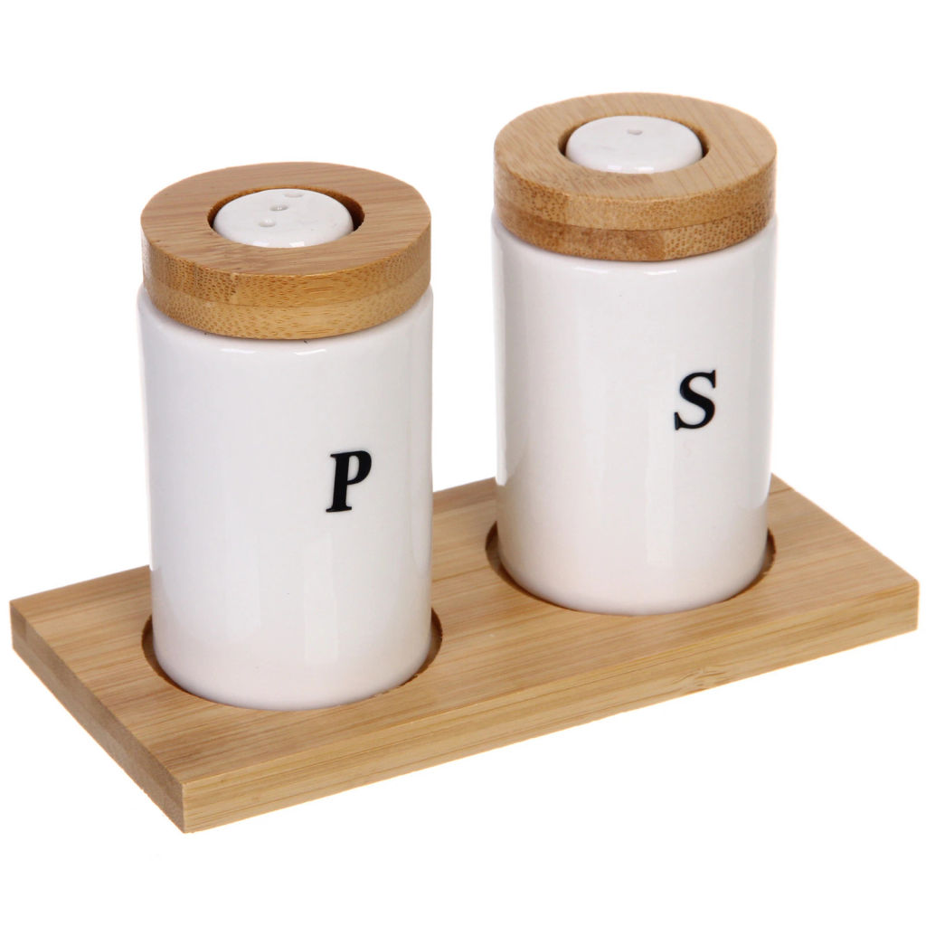 • Набор для специй 2шт на бамбуковой подставке "White magic" высокие
