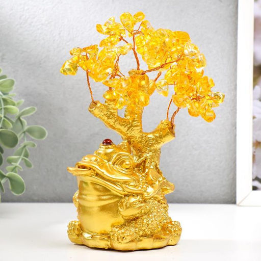 • Бонсай декоративный «Денежное дерево, жаба у дерева с янтарём», 108 камней, 17×14×8 см