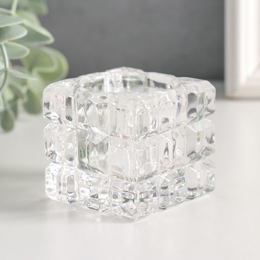 • Цена за 2 шт. Стеклянный подсвечник на 1 свечу «Квадрат. Сруб», прозрачный, d=3.5 см 5×5×5 см