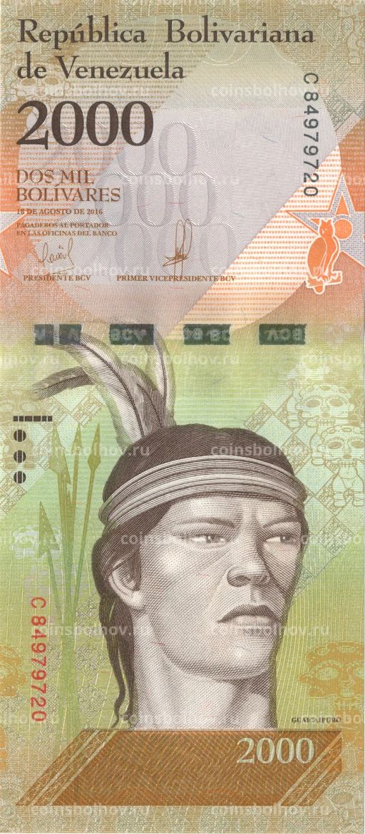 • Банкнота 2000 боливар 2016 года Венесуэла