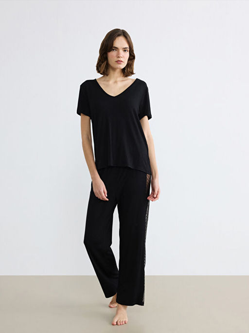 V Yaka Puantiyeli Kad?n Pijama Tak?m