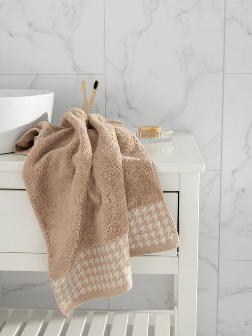 Мягкое махровое банное полотенце DeНАСТИЯ коллекции Пье-де-пуль изготовлены из высококачественного 100% хлопка, который комфортен, приятен на ощупь и прекрасно впитывает влагу. Хлопок натуральный, не обработан химическими компонентами, после стирки возможна усадка, махровая ткань из серии Пье-де-пуль с высокими петлями пышная, мягкая и нежная на ощупь. Полотенца из коллекции Пье-де-пуль отличаются повышенной плотностью - 470 г/м2, махровые полотенца представлены в трех размерах: 70х130 см, 50х90 см, 35х70 см. Бордюр полотенца представлен в жаккардовом исполнении узором Пье-де-пуль, в бытовом названии - гусиная лапка. На сегодняшний день Пье-де-пуль является настоящим символом шика, стиля и благородства. Каков бы ни был интерьер вашей ванной комнаты - наши полотенца идеально впишутся в его пространство. Размер 50х90 см, цвет бежевый.