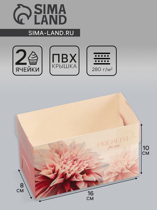 • Цена за 5 шт. Коробка для 2 капкейка с прозрачной крышкой, «Презент», 16×8×10 см