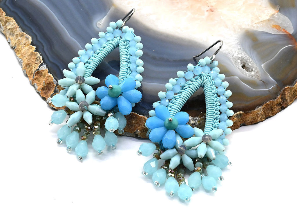 • Серьги ручной работы капля в оплетении цв.аквамарин