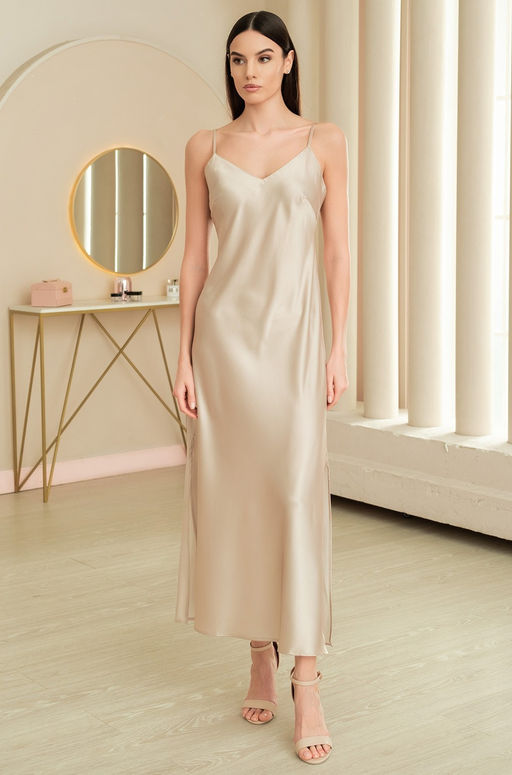 Элегантная длинная сорочка Mia-Amore выполнена из однотонного смесового шелка. Сорочка приталенного силуэта, слегка расклешенная к низу. Состав:70% натуральный шёлк, 25% полиэстер, 5% эластан
