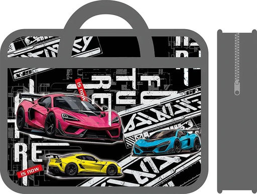 • Папка на молнии с ручками А4, ширина 75мм (ПМ-А4-25) "Авто трио" тканевая окантовка