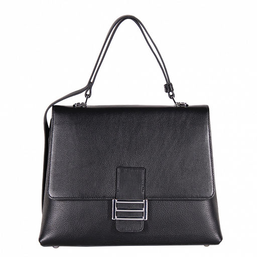 Базовая модель сумки-сэчел, выполнена из натуральной кожи. Декорирована пряжкой на клапане. Дополнена серебристой фурнитурой. Данная модель закрывается на клапан, носится на плече или через плечо с помощью ремня, а так же в руке за ручку. Каркас полужесткий. На дне предусмотрены ножки для устойчивости.