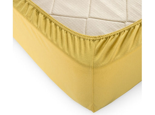 • Простыня трикотажная на резинке 90*200*20 цв. горчица