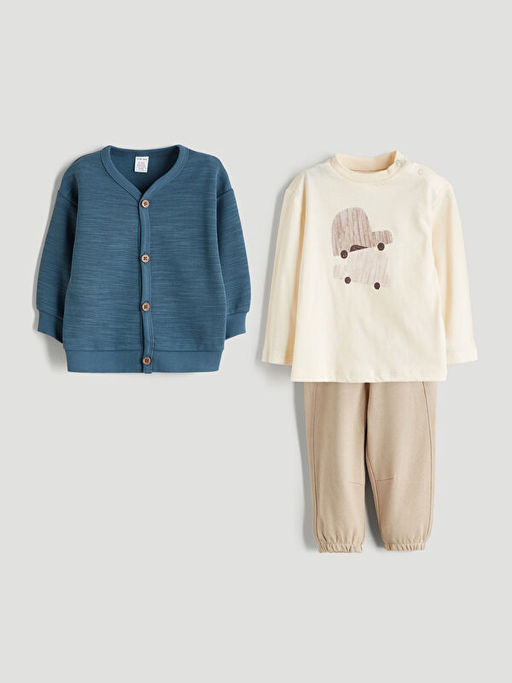 • Bisiklet Yaka Bask?l? Erkek Bebek 3l? Tak?m