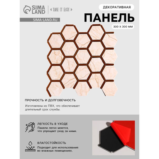Самоклеющиеся ПВХ - панели: решение для быстрого ремонтаПредставляют собой простой и удобный материал для быстрой отделки помещений. Используют для обновления интерьера квартир, офисов и коммерческих объектов. Данный облицовочный материал позволяет быстро преобразить пространство, создать уют и освежить отделку стен.Преимущества самоклеющихся панелейПростота установки: монтаж панелей не требует специальных инструментов и опыта, так как одна сторона покрыта клеевым слоем.Влагостойкость: панели устойчивы к воздействию влаги, их можно успешно применять в кухнях и ванных комнатах.Легкий уход: поверхность панелей легко очищается мягкой губкой с нейтральными моющими средствами.Экономия времени: благодаря простоте наклеивания монтаж занимает минимум времени, позволяя быстро завершить ремонтные работы.ПрименениеРекомендации по установке и эксплуатацииНе применяйте панели в местах с прямым контактом воды, таких как пол или зона готовки на кухне.Перед укладкой очистите стену от пыли и грязи, обработав спиртосодержащим раствором для удаления жирных пятен.Используйте дополнительный клей для ПВХ для усиления фиксации, особенно на сложных поверхностях.Избегайте чрезмерного натяжения при наклейке, иначе возможны деформации. Длина, см: 30. Ширина, см: 30. Тематика: Мозаика. Тематика: Мрамор. Тематика: Геометрия. Одноцветный: Нет. Подходит для ванной комнаты: Нет. Бесплатная доставка: Да. Примечание: Рекомендуется дополнительно использовать клей для ПВХ.. Примечание: Не рекомендуется использовать на открытом воздухе..
