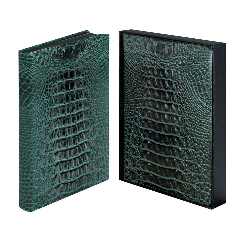 Ежедневник недатированный ESCALADA, А5+, 160 л., арт. 70573/ 10 АЛЛИГАТОР ЗЕЛЁНЫЙ (кожзам: 175x245 мм, твёрдый переплёт с поролоном, материал обложки: искусственная кожа "Аллигатор"; способ крепления блока: ниткошвейный; вн. блок: 160 л., кремовый офсет 80 г/м?, печать в две краски (линия), справочный материал: есть; перфорация углов блока: нет; отделка среза: окрашивание пантоном; закладка/-и: два ляссе, каптал: есть; форзац: печать пантоном, тиснение фольгой, персонализация возможна: нет; индивидуальная упаковка: промостикер + подарочная картонная коробка с ПВХ-крышкой + ПЭТ-пакет)