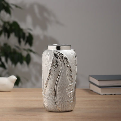 Подчеркните изящество интерьера с элегантным акцентом! Серебристая настольная ваза это стильное декоративное изделие, идеально подходящее для свежих цветов и сухоцветов. Ее рельефная поверхность притягивает взгляд, превращая любой стол в стильный центр композиции.