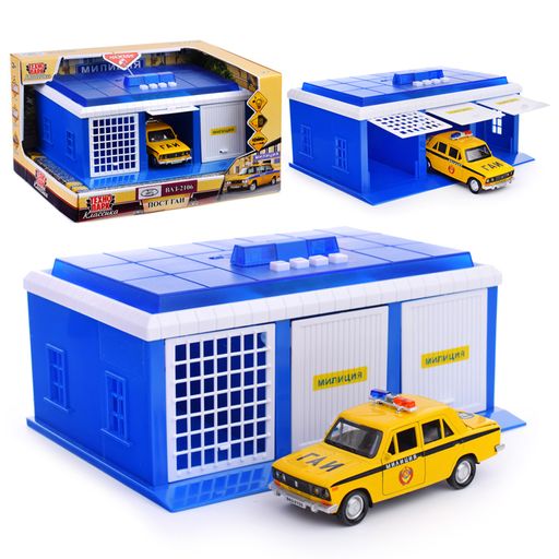 Игрушка пластик Пост ГАИ 22 см, ворота, ВАЗ-2106 (свет-звук, синий) в коробке