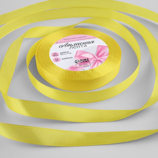 • Цена за 4 шт. Лента атласная, 12 мм, 23±1 м, жёлтая №15