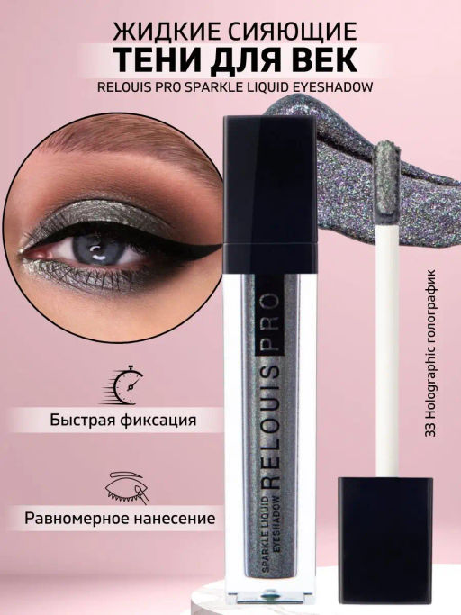 Жидкие **сияющие** тени для век это находка для каждого. Дуохромные переливы, яркое моно сияние, сверкающая фольга всё это возможно с Sparkle Liquid Eyeshadow. Создавайте праздничные smoky eyes, яркие стрелки, расставляйте акценты и не бойтесь экспериментировать!- дуохромный сияющий финиш- равномерное нанесение- быстрая фиксация- увлажняющие компоненты- трендовый акцент в макияже С жидкими тенями Relouis PRO можно создавать как лёгкие повседневные макияжи, так и необычные праздничные. ТЕНИ ДЛЯ ВЕК ЖИДКИЕ Relouis PRO легко, эффектно, профессионально!