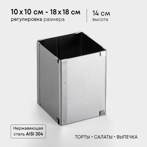 • Форма для выпечки с регулировкой размера TAS-PROM «Квадратная», h=14 см, 10×10 - 18×18 см, нержавеющая сталь