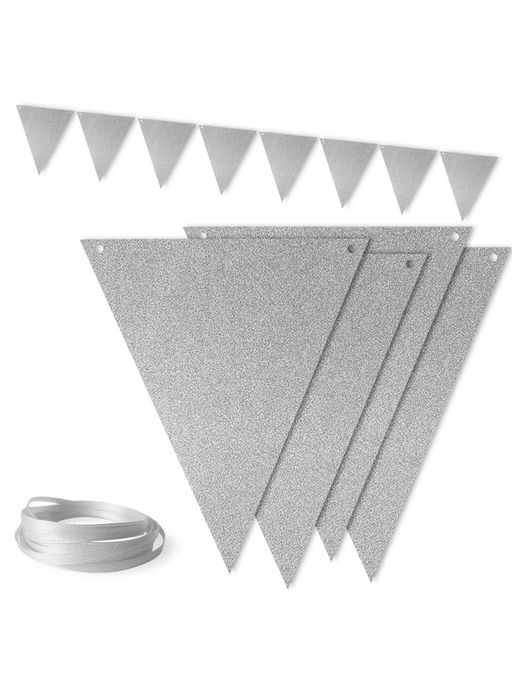 Цена за 2 шт. Гирлянда Флажки, Серебро, с блестками, 500 см, 13*18 см*12 шт, 1 упак.