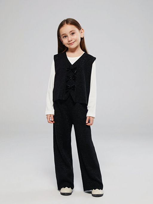 Simli Triko K?z ?ocuk Yelek ve Pantolon
