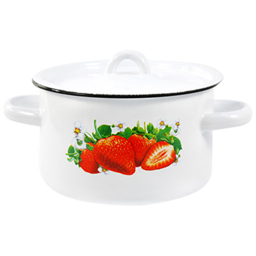 • "Клубника садовая" Кастрюля эмалированная 1,5л, д15см, h9см, цилиндрическая форма, металлическая крышка, белый (Россия)
