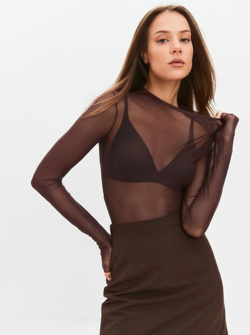 • K13377 Лонгслив прозрачный КОРИЧНЕВЫЙ