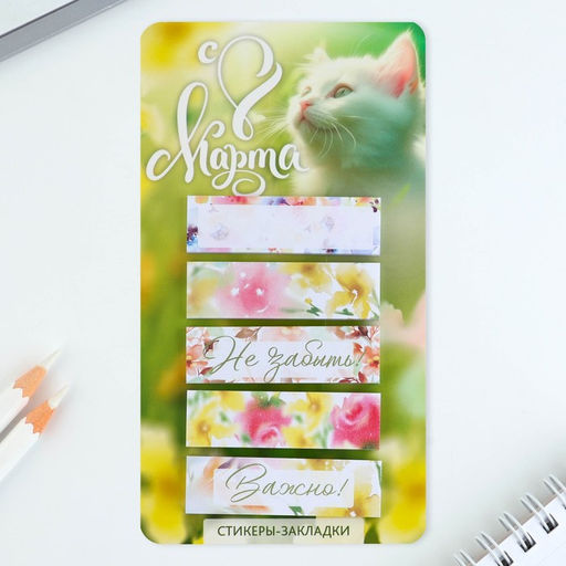 • Цена за 2 шт. Стикеры-закладки, на подложке С 8 марта, Коша, 5 шт., 30 л/шт.