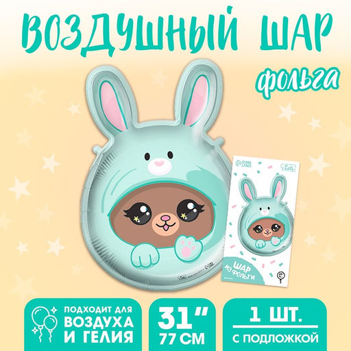 • Воздушный шар фольгированный 31" «Мишка в зайке», фигура, с подложкой