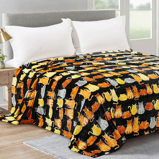 Плед/покрывало 150х200см "Котики", велсофт "California" набивной, полиэстер 100%, плотность 270г/м2, упаковка: 16х33см пояс бумажный, "Домашняя мода" (Россия)