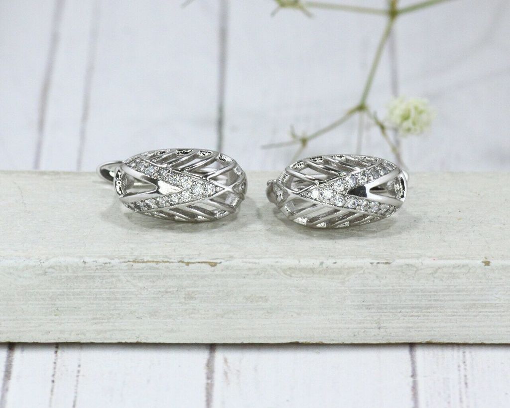 Красивые серьги с благородными цирконами изготовлены из специального гипоаллергенного ювелирного сплава, который покрыт золотом или устойчивым родиевым покрытием, предотвращающим раздражение кожных покровов. Размер сережки: 1.5 см * 1.2 см