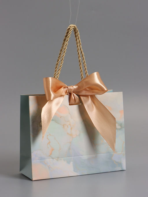 • Пакет подарочный ламинированный «Мрамор», голубой, с бантиком, 19×15×7 см