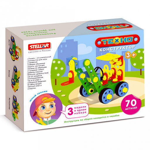 Игрушка "Конструктор "Техно" "Кран" 16,5х4х12,5см, 70 элементов, полипропилен, картонная коробка в ту пленке, "Stellar" (Россия)