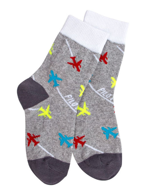 Классические носки для мальчиков с рисунком в АВИА-тематике по всей длине.