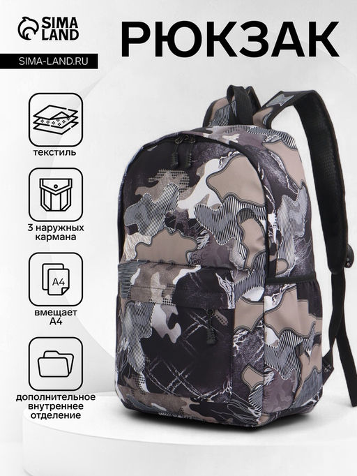 Рюкзак школьный на молнии, с карманами, с абстрактным принтом, размер 30?13?42 см, с принтом, чёрный