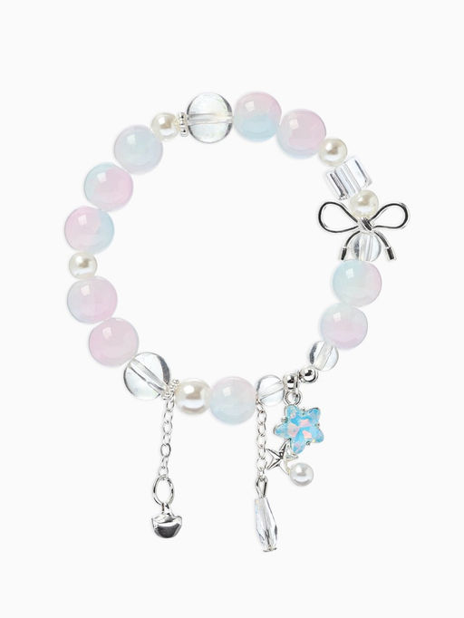 • Браслет с подвесками "Сахарный" звёздочка, шар №10/8, цвет розово-голубой в серебре