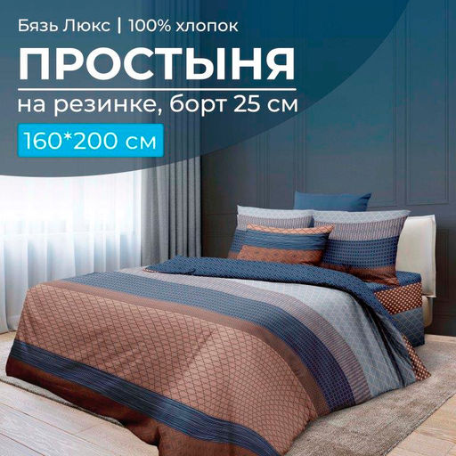 Артикул: Простыня на резинке 160*200 см, бязь "Люкс", борт 25 см (Геометрия)