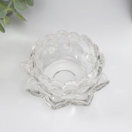 • Стеклянный подсвечник на 1 свечу «Лотос», прозрачный, 4×9.5×9.5 см